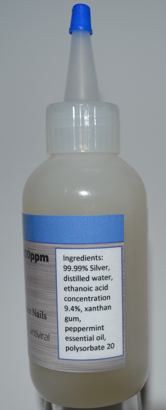 Colloidal Silver Nail GEL 200 ppm with Ethanoic Acid and Peppermint Essential Oil Net Weight 5.1 ounces or ( 135 mL)